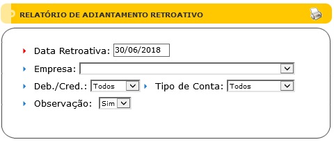 - Adiantamentos Retroativos: Ao preencher os campos, o usuário terá opção de visualizar e imprimir o Relatório de Adiantamentos Retroativos, clicando em Gerar o Relatório.