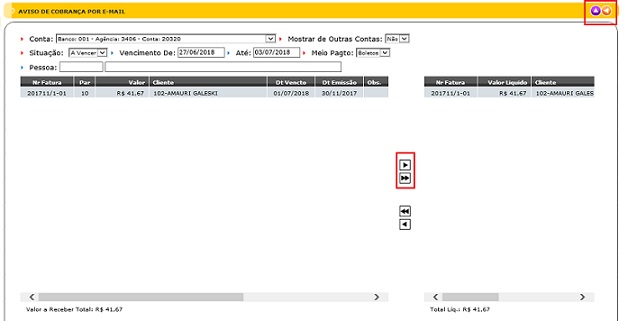 Para enviar um aviso de cobrança por Email, deverá: