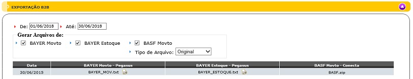 A tela permite escolher os filtros para fazer Exportação B2B, a seguir: