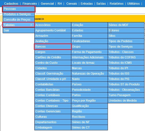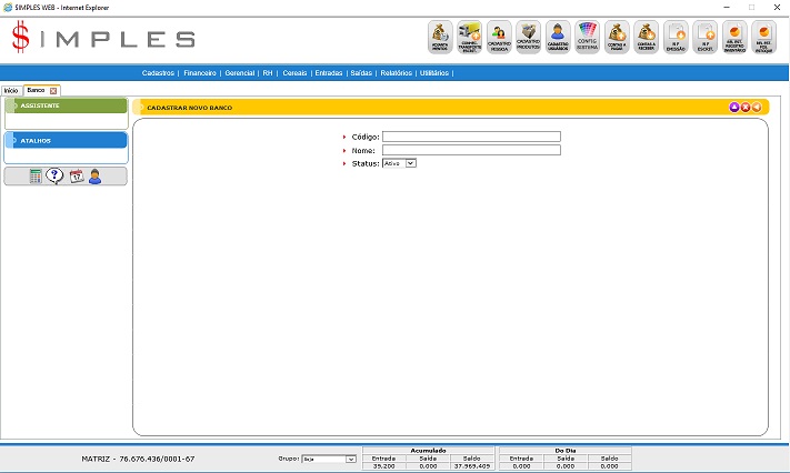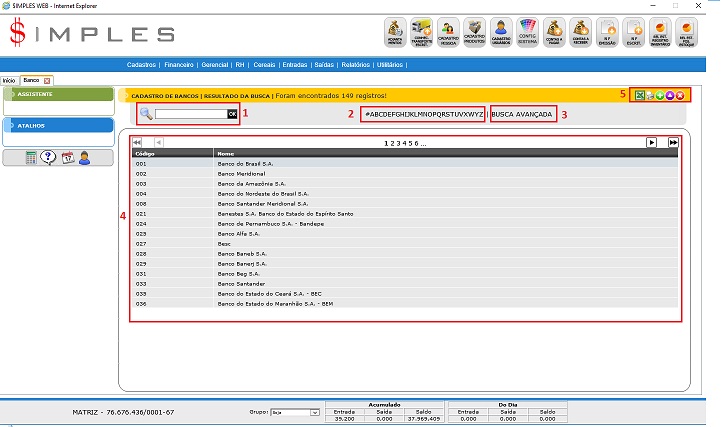 - Grade de Bancos: Mostra todos os Bancos conforme os filtros descritos anteriormente.