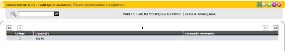 - Para excluir, deve selecionar um Tipo do Grupo na grade, e clicar no ícone de excluir no navegador. Abrirá uma mensagem para confirmação da operação de exclusão. Ao confirmar a operação, o tipo será excluído.