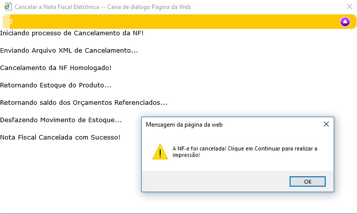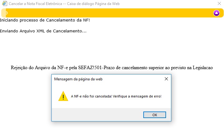 Cso seja uma nota fiscal eletrõnica, será pedida à SEFAZ a autorização para operação, que poderá, eventualmente recusar a solicitação, como mostra figura abaixo: