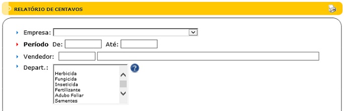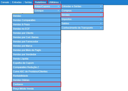 Para acessar este relatório é preciso ir ao Menu “ Relatórios - Notas/Cupons - Vendas - Centavos".