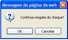 a. Filtrar: Para confirmar o resgate do cheque o usuário deverá clicar sobre o ícone filtrar, ao clicar irá aparecer a seguinte mensagem: