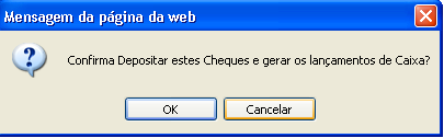 c. Para Excluir Cheques, o usuário deverá clicar no botão Excluir do navegador e confrmar Exclusão.