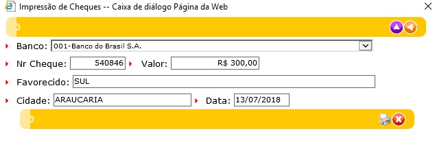 e. 1 Para fazer a impressão de cheque, basta clicar em impressão de cheques, vai abrir a seguinte janela: