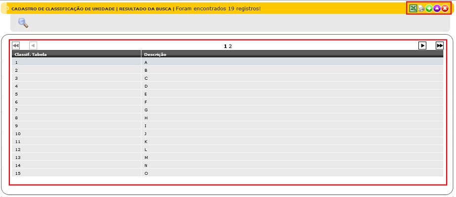 - Grade das Classificações: Mostra todos as Classificações conforme os filtros descritos anteriormente.