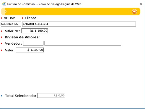 Feito isso, irá abrir a tela com os campos de vendedor e valor para ser cadastrado.