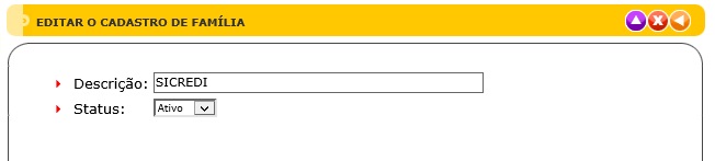 - Para Incluir uma nova Família, o usuário deve clicar sobre o ícone de incluir no navegador. Ao preencher os campos, o usuário deve clicar no botão Incluir.