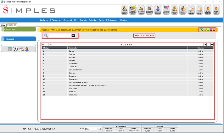 - Grade: Mostra todas as Pessoas - Família conforme os filtros descritos anteriormente.
