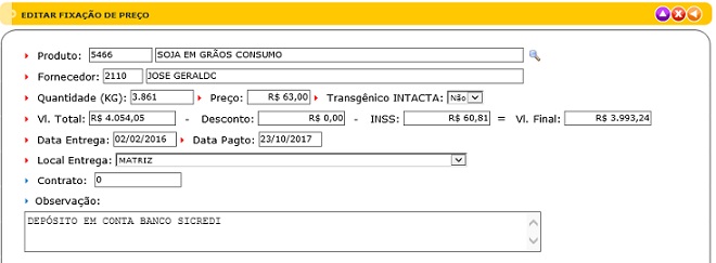Para acessar, use o Menu “Cereais - Fixação de Preço"