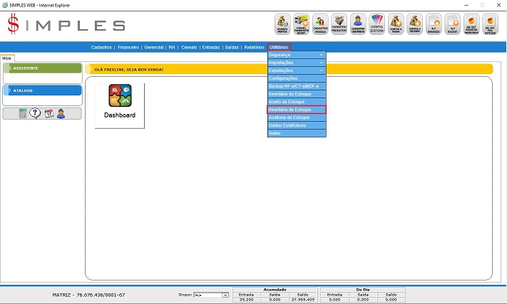 Para acessar esta Tela de Backup NF-e é preciso ir ao Menu “Utilitários - Inventário de Estoque"