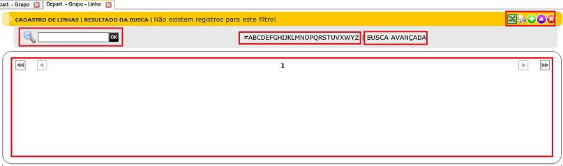 - Grade de Linhas do Grupo: Mostra todas as Linhas do Grupo do Departamento selecionado anteriormente, conforme os filtros.