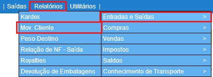 Para acessar este relatório é preciso ir ao Menu “ Relatórios - Notas - Entradas e Saídas - Movimento Cliente”.