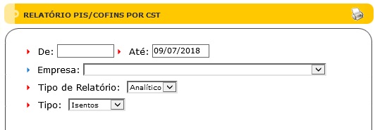 Para acessar este relatório é preciso ir ao Menu “Relatórios-Notas/Cupons - Impostos - PIS/COFINS por CST”.