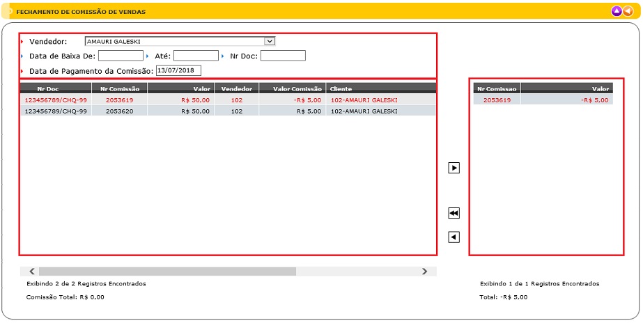 - Grade de vendas: Mostra todas as vendas e o valor da comissão feita pelo Vendedor, dentro do período informado pelo Usuário.