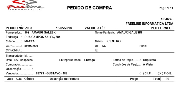 3. Pesquisa: Permite executar uma pesquisa do Fornecedor;