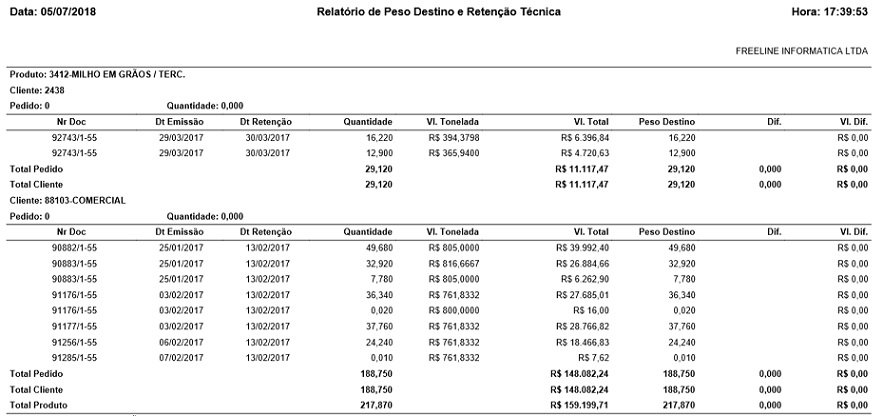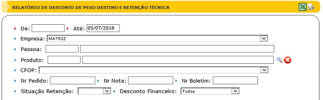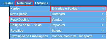 Para acessar este relatório é preciso ir ao Menu “ Relatórios - Notas - Entradas e Saídas - Peso Destino”.