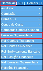 Para acessar, use o Menu “Gerencial - Previsão Orçamentária ”.