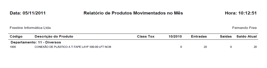 Para acessar este relatório é preciso ir ao Menu “ Relatórios-Estoque-Produto Movimentado no Mes”.