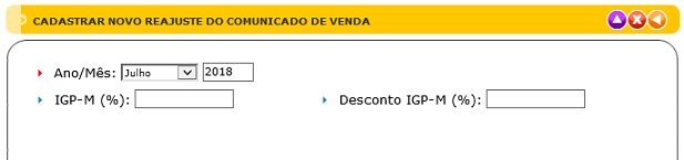 - Itens de Navegação: Botões "Incluir Novo Reajuste do Comunicado de Venda"; e "Deletar Reajuste".