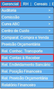 Para acessar, use o Menu “Gerencial - Relatório Contas a Receber ”.