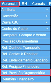 Para acessar, use o Menu “Gerencial - Relatório Previsão Financeira ”.