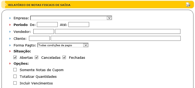Para acessar este relatório é preciso ir ao Menu “ Relatórios - Notas - Entradas e Saídas - Relação de NF - Saída”.