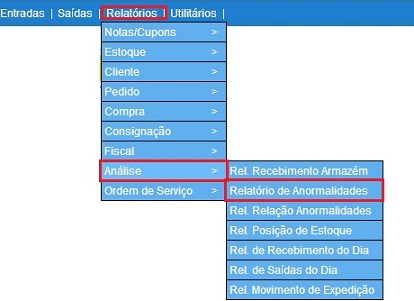 Para acessar este relatório é preciso ir ao Menu “ Relatórios - Análise - Relatório de Anormalidades"