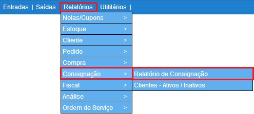 Para acessar este relatório é preciso ir ao Menu “ Relatórios - Relatório de Consignação"