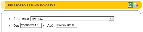 Esse relatório terá a possibilidade de ser impresso clicando em “Gerar Relatório”, ou gerar um arquivo de Excel, clicando em "Gerar Arquivo Excel".