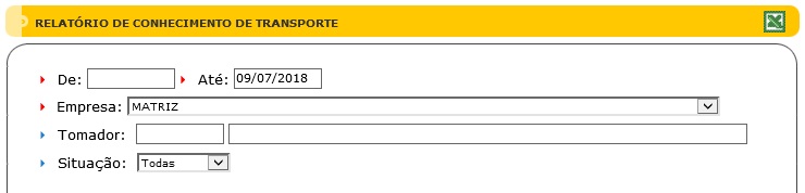 Para acessar este relatório é preciso ir ao Menu “ Relatórios - Notas/Cupons - Conhecimento de Transporte - Saídas"