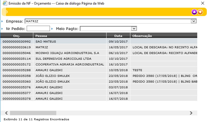 Observe que há a quantidade liberada do produto no orçamento (quantidade liberada no orçamento menos a quantidade já atendida através deste orçamento), e a quantidade à faturar nesta nota.