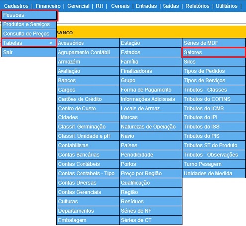 Para acessar o Cadastro de Setores, use o Menu “Cadastro - Tabelas – Setores”. Será apresentada a tela principal com a lista de Setores.