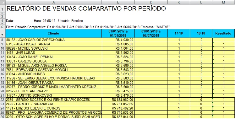 Esse relatório terá a possibilidade de ser exportado para o Excel, clicando em “Gerar arquivo Excel”.