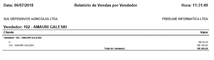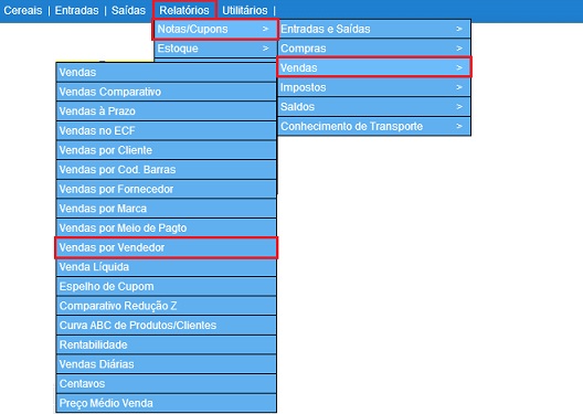 Para acessar este relatório é preciso ir ao Menu “ Relatórios - Notas/Cupons - Vendas - Vendas por Vendedor".