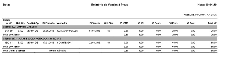 Para acessar este relatório é preciso ir ao Menu “ Relatórios - Notas/Cupons - Vendas - Vendas à Prazo”.